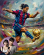 そして作品の中心には、世界中を魅了したロナウジーニョの輝き。自由奔放なプレーと笑顔で人々を虜にした彼の存在は、この作品にさらなる彩りを添えています。